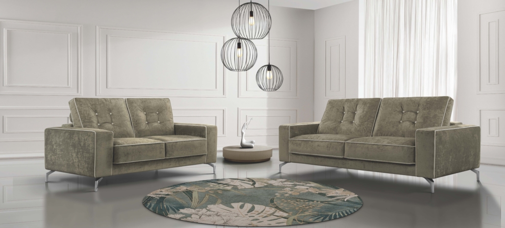 - Estructura de madera de pino macizo con soportes laterales de tablero de particulas, todo ello recubierto con espuma de poliuretano.